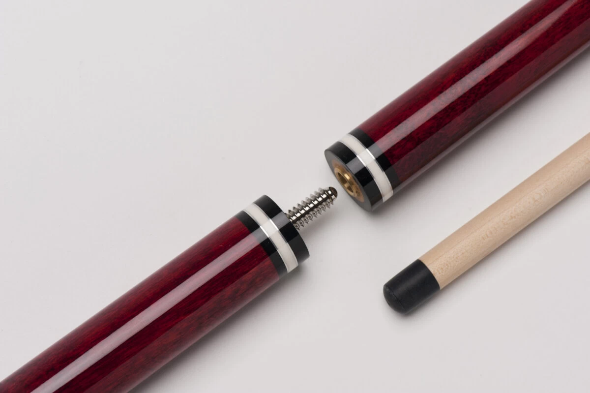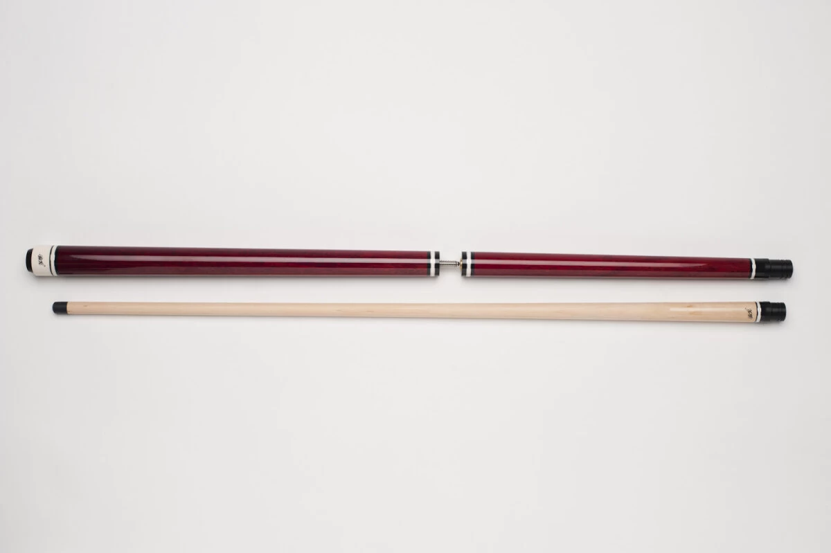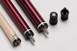 Mit den beiden Modellen der BBJ-Reihe erhalten Sie ein extrem günstiges und für diesen Preis wirklich hervorragendes Break-/Jump-Queue. Das BBJ-002 ist komplett bordeaux-rot eingefärbt, mit durchscheinender Textur des Holzes, hat einen lackierten Griffbereich und weiße und schwarze Zierringe an den Gewinden und am Butt. Break-/Jump-Queues vereinen ein Break-Queue für den Anstoß und ein Jump-Queue für Jump-Shots in einem Queue und sorgen damit für mehr Platz im Queue-Köcher und für weniger Platz in der Brieftasche.