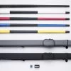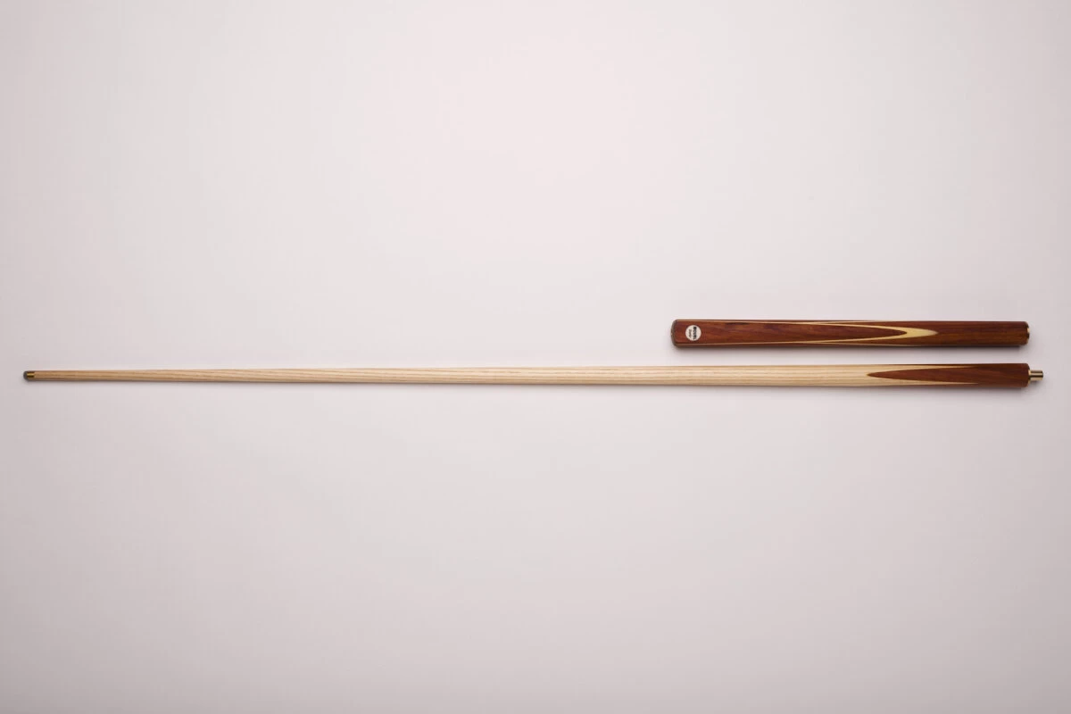 Ein schönes Einsteiger-Queue in schlichtem, klassischem Design mit 9,5mm breitem Qualitäts-Klebeleder. Auch zu diesem Preis erhalten Sie dieses Queue schon mit echt gesplicetem Dekor. Das heißt, dass die dunklen Spitzen („Splices“) durch Verleimung verschiedener Hölzer entstehen und nicht aufgemalt oder geklebt sind. Zusätzlich hat dieses Queue echte Splices am Unterteil, welche die schöne Verzierung mit wechselnden Hölzern erzeugen. Das Queue ist 3/4-geteilt und benötigt zum Transport somit einen entsprechenden Snooker-Koffer.