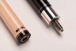 Die Billardqueues aus der BE0-Reihe von CUEL sind die perfekten Begleiter fĂŒr Hobby- und Freizeitspieler sowie Einsteiger im Vereins-Poolbillard. Die zweiteiligen Queues haben eine GesamtlĂ€nge von ca. 148 cm, was der klassischen LĂ€nge eines traditionellen Billard-Queues entspricht und ein Gewicht von 19-20 Unzen. Sie sind mittig geteilt und lassen sich in allen handelsĂŒblichen Billardtaschen oder Billardköchern gut transportieren. Diese Pool-Queues ĂŒberzeugen optisch mit verschiedenen schicken Printdesigns in Einlegeoptik, die sich den handgemachten Einlegearbeiten bei vielen hochpreisigeren Queues orientieren. Am hinteren Ende des Queues und ĂŒber dem Abschlussring des Oberteils sind die Queues mit einem schwarzen CUEL-Logo versehen. Die Oberteile dieser Poolbillard-Queues sind aus Vollholz gefertigt, was fĂŒr eine lange Haltbarkeit und konstantes Spielverhalten sorgt. Jedes Queue ist mit einem Lepro-Klebeleder ausgestattet und mit einem 5/16-18-Gewinde aus Metall verschraubt. Am Unterteil sorgt ein gewickeltes Griffband aus irischem Leinen fĂŒr Sicherheit und einen optimalen Griff beim StoĂ.