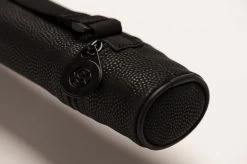 Mit diesem Köcher ist Ihr Billard-Queue immer sicher. Einfacher und gut verarbeiteter Köcher mit schönem genopptem Kunstleder als Obermaterial für ein zweigeteiltes Queue. Mit einem Tragegriff und zwei sicheren Metallverschlüssen.
