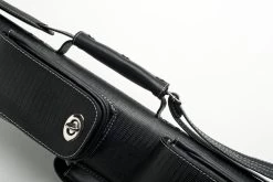 Die Hustler-Köcher gibt es in den Varianten 2/2 (2 Unter- und 2 Oberteile), 2/4 und 3/5. Alle Modelle haben eine Seitentasche für das Unterteil eines Jump-Queues. Zwei weitere großzügige Seitenaschen fassen Ihr komplettes Billardzubehör. Die Köcher sind in den Farben schwarz und braun verfügbar. Das Obermaterial ist ein sehr feines Kunstleder mit Schlangenleder-Prägung. Was man dem Köcher ebenfalls auf den ersten Blick ansieht, ist seine sehr stabile und saubere Verarbeitung mit extra starken Nähten und Verstärkungen an allen kritischen Stellen eines Queue-Köchers. Somit haben Sie sowohl an Ihrem Queue als auch an dem Köcher lange Freude.
