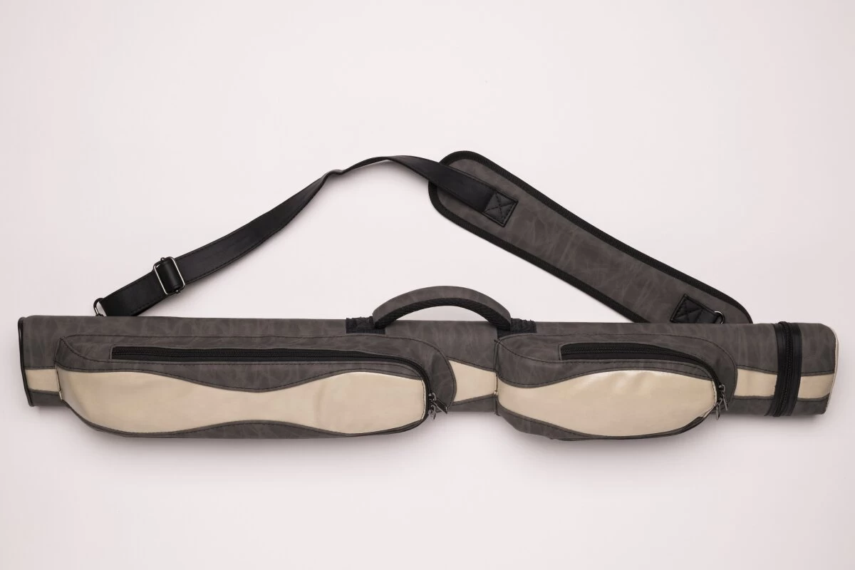CUEL Billard-Köcher Suede Grey 2/2 Für Pool-Billard-Queues, Aus Kunst-Wildleder, Mit Schultergurt, Tragegriff Und Zwei Seitentaschen Für Billardzubehör