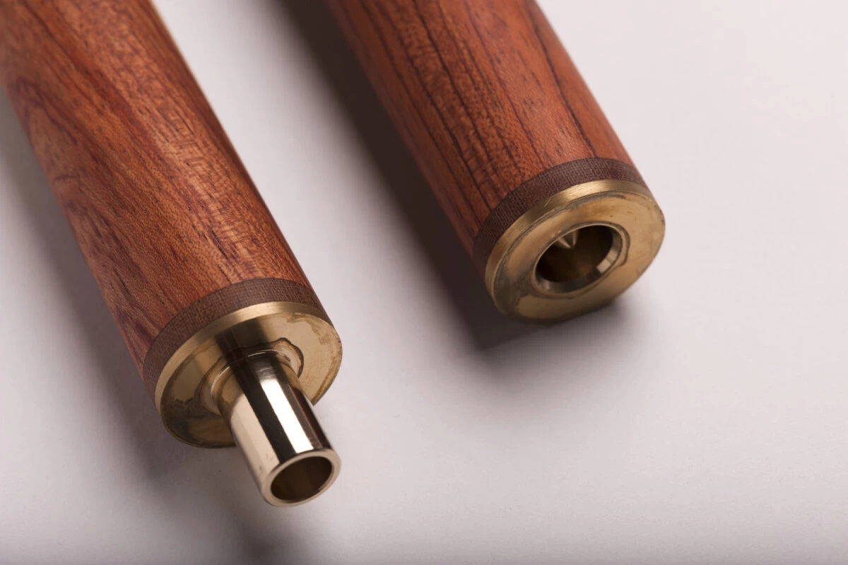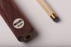 Ein schönes Einsteiger-Queue in schlichtem, klassischem Design mit hellem Holz und 9,5mm breitem Qualitäts-Klebeleder. Auch zu diesem Preis erhalten Sie dieses Queue schon mit echt gesplicetem Dekor. Das heißt, dass die dunklen Spitzen („Splices“) durch Verleimung verschiedener Hölzer entstehen und nicht aufgemalt oder geklebt sind. Anders als bei den meisten Snooker-Queues sehen Sie bei diesem Modell die natürliche Maserung der Esche. Normalerweise wird bei Snooker-Queues das Holz eingefärbt, wodurch die klassische schwarze Maserung entsteht. Bei diesem Queue wurde darauf verzichtet. Das Queue ist 3/4-geteilt und benötigt zum Transport somit einen entsprechenden Snooker-Koffer.