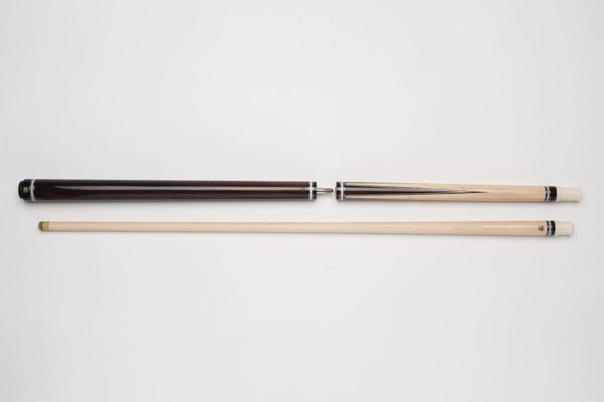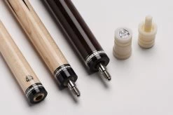 In der DBJ-Reihe finden sich hochwertige Break-/Jump-Queues zum hervorragenden Preis. Die Modelle sind entweder aus Palisander oder Zebrano-Holz gefertigt und mit vier echten, eingelegten Points aus Ahorn verziert. An den Gewinden und am Butt wird das Queue von schönen Zierringen veredelt. Break-/Jump-Queues vereinen ein Break-Queue für den Anstoß und ein Jump-Queue für Jump-Shots in einem Queue und sorgen damit für mehr Platz im Queue-Köcher. Die DBJ-Queues verfügen über eine Kunststoff-Ferrule und eine G10-Pommeranze. Das Break wird kraftvoller und Jump-Shots sind einfacher auszuführen. Zwei rostfreie 3/8×6-Gewinde ermöglichen eine leichte Teilung des Queues für kurze oder lange Jumpshots. Zum Schutz des Gewindes gibt es ein paar Gewindeschoner zu jedem Break-/Jump-Queue mit dazu.