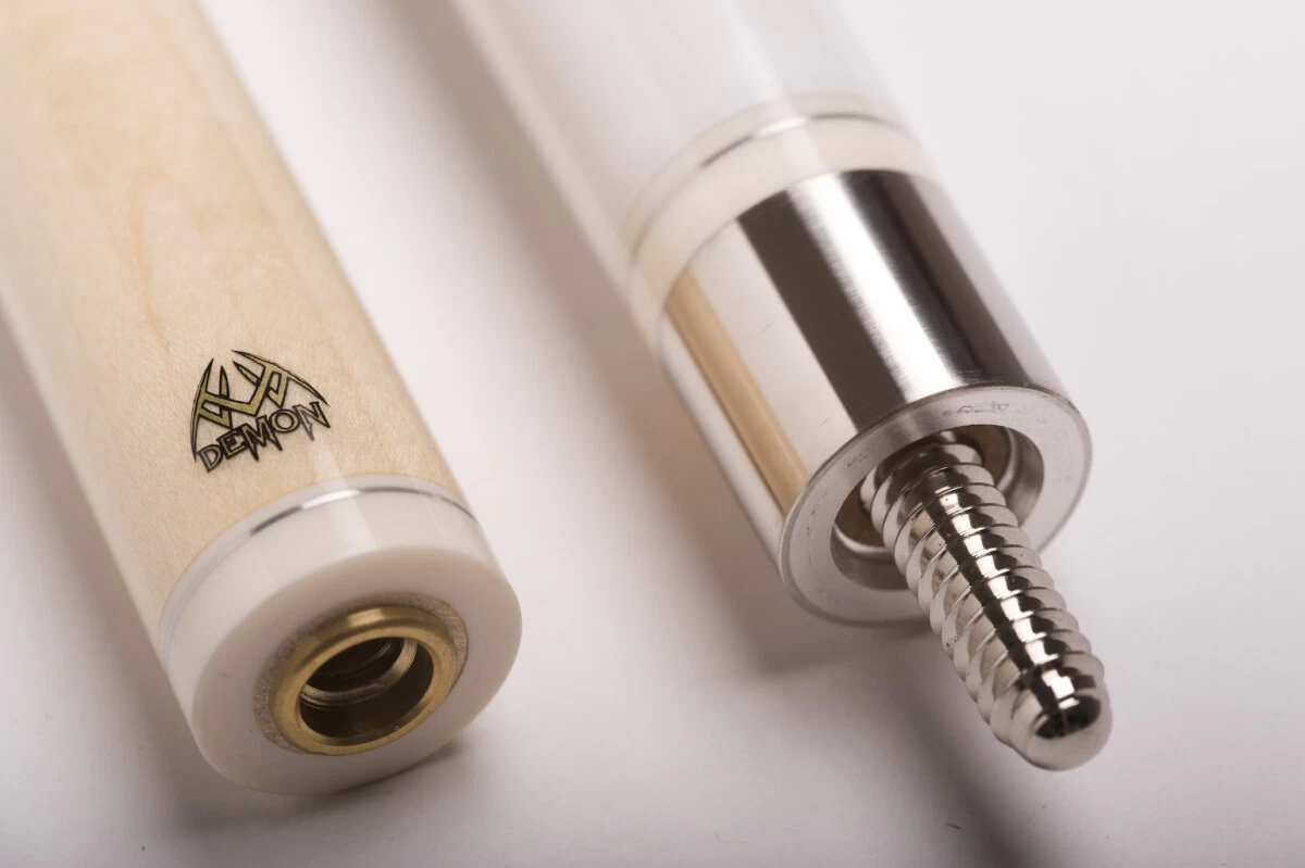 In reinem weiĂ lackiertes Einsteigerqueue mit Lepro-Klebeleder. Das Queue ist mit einem 5/16-14-Gewinde in der Mitte zweigeteilt. Das Gewinde besteht aus rostfreiem Stahl fĂŒr lange Lebensdauer. Das Griffband ist mit irischem Leinen gewickelt. Perfekt fĂŒr Freizeitspieler oder Einsteiger im Verein.