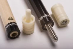 Die DF1-Reihe kommt im schicken und traditionellen Look daher. Sämtliche Billardqueues verfügen über ein sehr schönes Foliendesign mit Einlegeoptik, das dem Queue ein besonderes Aussehen verleiht. Zierringe verfeinern das Queue am Griffband und am Gewinde Auf der technischen Seite überzeugen die Queues mit sauberer Verarbeitung und einem überragenden Preis-Leistungs-Verhältnis. Die Vollholz-Oberteile sorgen für ein konstantes und verlässliches Spielverhalten. Alle Modelle sind mittig im Verhältnis 1:1 geteilt und verfügen über ein Qualtäts-Klebeleder von Triangle. Die rostfreie 3/8×10-Verschraubung mit Holzgewinde garantiert eine einwandfreie Kraftübertragung. Zum Schutz des Gewindes gibt es ein paar Gewindeschoner zu jedem Billard-Queue mit dazu.