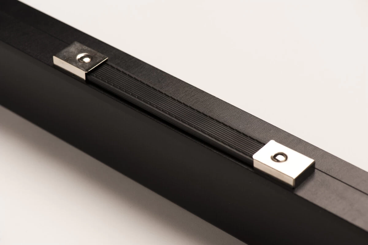 Mit diesem Koffer ist Ihr Billard-Queue immer sicher. Einfacher und gut verarbeiteter Koffer für ein zweigeteiltes Queue, mit gefütterter Unterteilung für ein Unter- und Oberteil. Neben dem Queue ist aber noch Platz für Kreide oder einem Ledertrimmer Mit einem Tragegriff und zwei sicheren Chromverschlüssen. Farbe schwarz, Länge 80cm