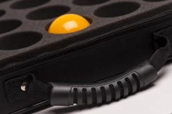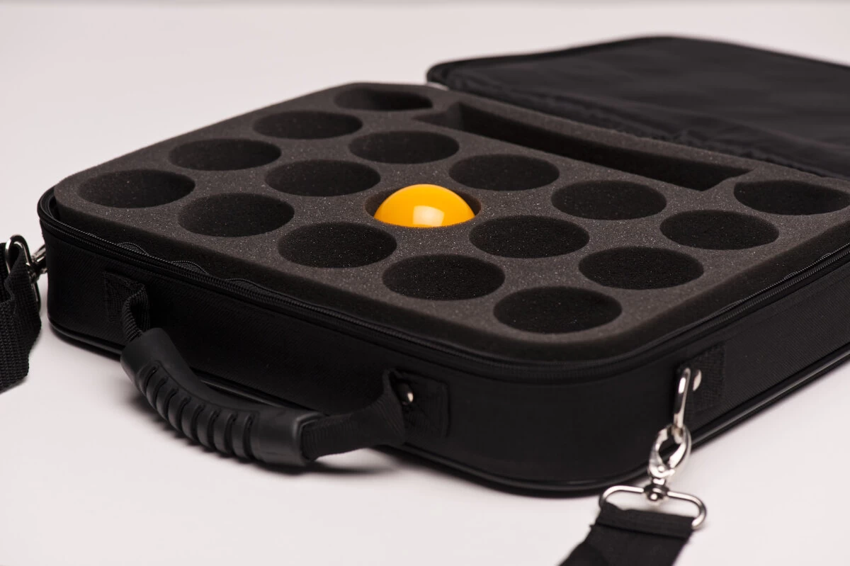 Mit dieser Kugeltasche für Ihre Billardkugeln haben Sie auch im Billardsalon oder -café Ihrer Wahl auch in Sachen Kugeln immer das beste Equipment dabei. Diese Tasche fasst einen kompletten Kugelsatz für Pool-Billard mit 57,2mm-Kugeln sowie Zubehör. Mit dem Tragegurt können Sie die Tasche bequem über der Schulter tragen. Ein ergonomisch geformter Tragegriff ist ebenso dabei. Auch für zu Hause eine sichere Aufbewahrung für Ihre Qualitätskugeln.