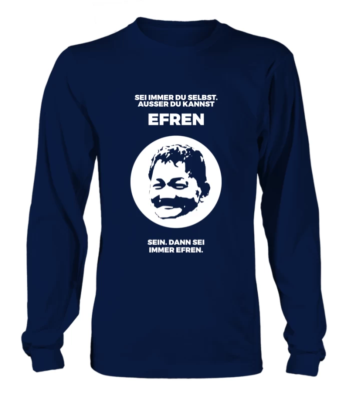 Jeder Mensch sollte stets er selbst sein. Es sein denn, man kann der Größte aller Zeiten sein. Wenn es am Tisch mal nicht weiter geht und ein Geniestreich her muss, dann zieh Dir einfach dieses Shirt an und sei der Größte aller Zeiten! „Sei immer Du selbst, außer Du kannst EFREN sein.“