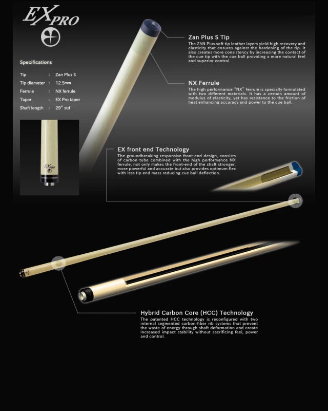 Das Ex Pro Low-Deflection-Oberteil verfĂŒgt ĂŒber die nĂ€chste Generation des Hybrid Carbon Core (HCC) und der EX-Front-End-Technologie. Der HCC gibt Ihnen die richtige Balance zwischen HĂ€rte und FlexibilitĂ€t und schafft mehr Wirkung ohne Verlust an Spielball-Kontrolle. Die verbesserte Front-End-Technologie bietet eine noch geringere Abweichung der WeiĂen zusammen mit weiteren Leistungssteigerungen. Diese technologischen Fortschritte zusammen mit dem EX Pro Taper und einem Zan Plus-Medium-Leder macht das EX Pro laut Mezz zum besten Low-Deflection-Oberteil der Welt.