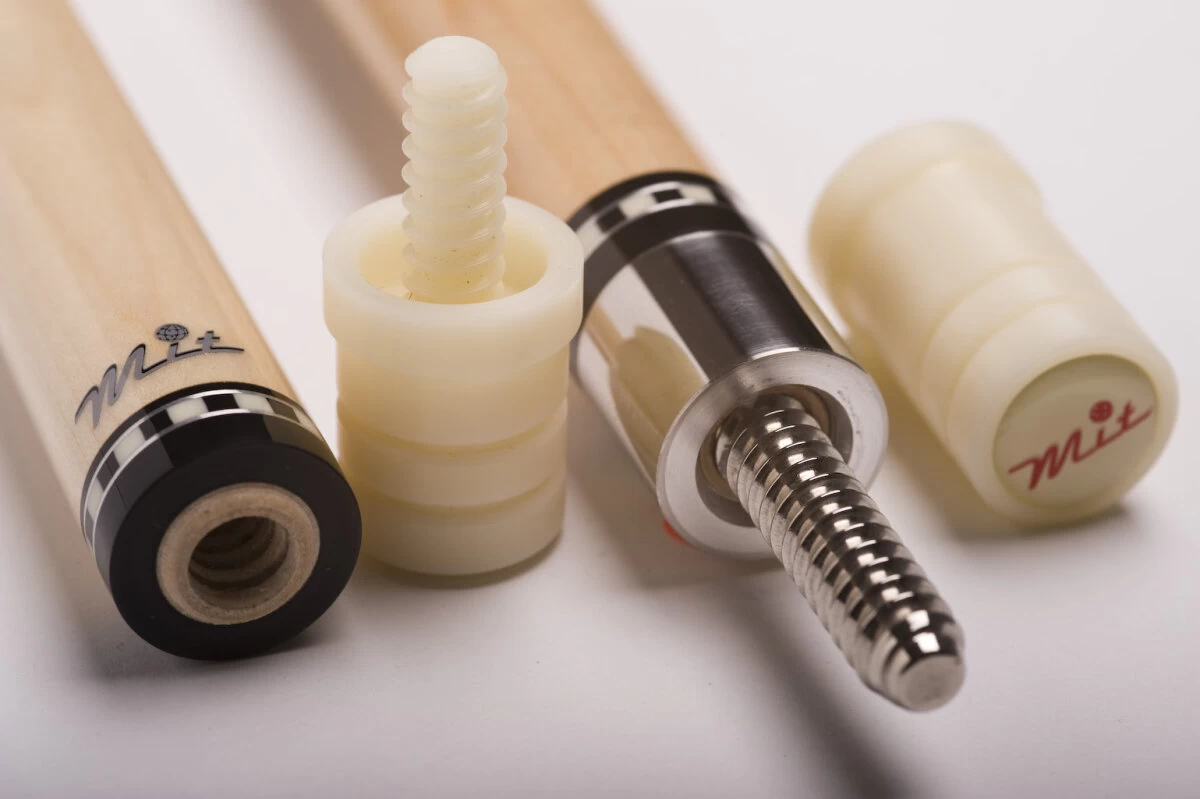 Die MF1-Serie von MIT kommt mit klaren und traditionellen Designs daher. Alle Queues verfügen über ein Vollholz-Oberteil und sind in der Mitte im Verhältnis 1:1 geteilt. Das 3/8×10-Gewinde sorgt für eine optimale Verbindung und gute Wirkungsübertragung. Alle Billard-Queues sind mit einem Qualitätsleder bestückt und verfügen über ein Griffband aus irischem Leinen.