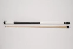Wer sich ein einfaches, aber edles Queue wünscht, fährt mit den beiden Queues dieser Serie richtig. Das MF2-002 kommt in komplett weißer Lackierung daher und hat ein schwarzes Griffband aus irischem Leinen. Am Butt hat das Queue einen schönen eingelegten Zierring in Karo-Muster. Kleine Zierringe ebenfalls am Griffband und am Gewinde. Wir haben hier eine zuverlässige 3/8-11-Verschraubung aus Messing mit Holzgewinde für beste Kraftübertragung beim Stoß. Bei diesem Modell wurde eine Kunststoff-Ferrule verarbeitet und mit einem Qualitäts-Schichtleder versehen. Lieferung inkl. Gewindeschoner zum Schutz Ihres Queues.