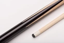 Wunderschönes Pool-Queue mit echten Einlegearbeiten aus Holz im „Sneaky-Pete“-Design. Das verwendete Holz (Rengas) kommt hier voll zur Geltung, ist klar und einfach verarbeitet. Als kleines Schmuckdetail dient der Zierring am Butt (unteren Ende) des Queues. Das Gewinde besteht aus einer 3/8-11-Verschraubung mit hochwertigem Messing-Pin und einem reinen Holzgewinde für perfekte Kraftübertragung. Das Queue wird mit Kunststoff-Gewindeschonern zum Schutz der Gewinde geliefert.