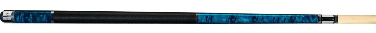 Dieses Queue kommt in klassischer Gestaltung daher und ist für diesen Preis wirklich ein edles Stück. Das Unterteil besteht aus wunderschönem, echten Vogelaugen-Ahorn in blauer Färbung. Es verfügt über ein rostfreies Edelstahl-Gewinde und mehrere silberfarbene Zierringe. Das Griffband besteht aus schwarzem, doppelt gepressten irischem Leinen und unterstreicht das edle Gemüt dieses Instruments.