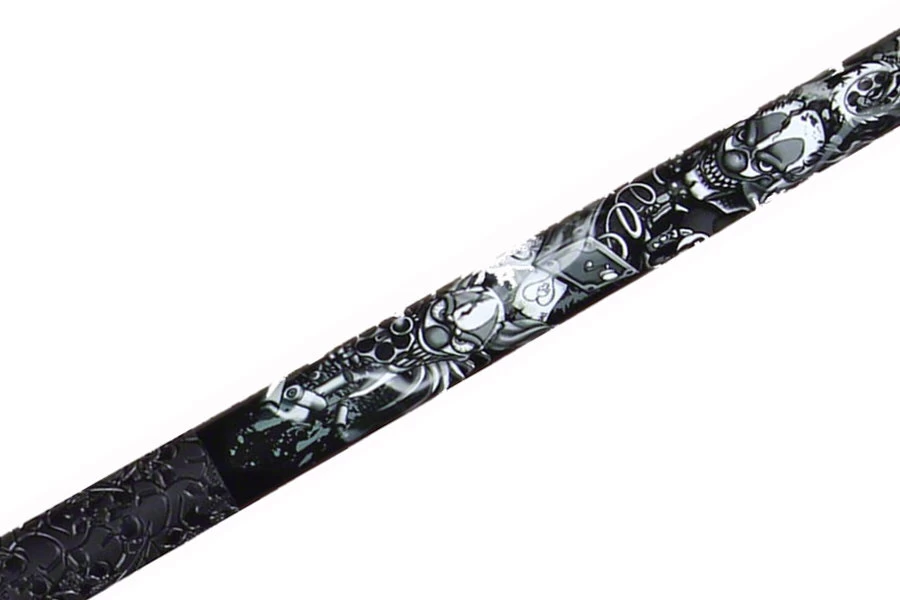 Der Horror-Clown unter den Queues: Wer mit seinem Queue Angst und Schrecken am Tisch verbreiten will, sollte sich dieses Modell mal ansehen. Das nachtschwarze Queue aus Grade-A-Hartholz-Ahorn ist mit Killer-Clown-Motiven verziert. Der gummierte Griffteil kommt dazu passend im schwarzen Totenkopf-Muster daher.