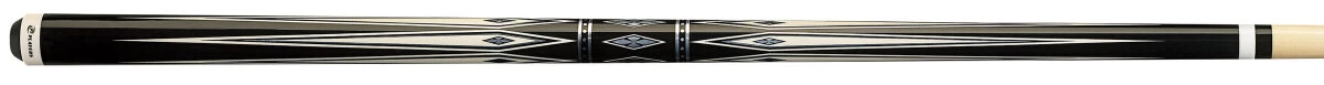 Klares, grafisches, schwarzes Queue mit weißen Diamant-Tropfen über die ganze Länge, silbernen Diamant-Akzenten, einem geschmeidigen lackierten Griffbereich, mit Implex-Gewinde und Butt.