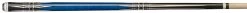 Klassisches Queue aus kobaltblau gebeiztem Vogelaugen-Ahorn mit perlmuttverziertem Dolchmotiv vorne und hinten und schwarz-weiĂem Gewindekragen. 5/16×18-Gewinde mit Implex-Joint, ohne Griffband.