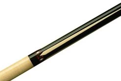 Queue mit schwarzem Forearm und Verzierungen in Cocobolo- / Bocote-Optik. Versehen mit einem lackierten Griffbereich und dem neuen HXT-Low-Deflection-Oberteil.