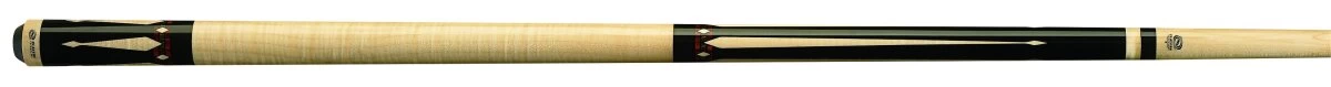 Queue mit schwarzem Forearm und Verzierungen in Cocobolo- / Bocote-Optik. Versehen mit einem lackierten Griffbereich und dem neuen HXT-Low-Deflection-Oberteil.