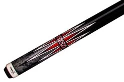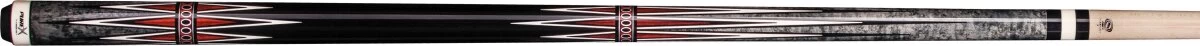 Klassisch gestaltetes Queue aus nordamerikanischem Ahorn mit Designelementen in Smoke-Grey- und Cocobolo-Optik, Schwarz und WeiĂ, mit Kamui-Leder und HXT-Low-Deflection-Oberteil. Ohne Griffband.