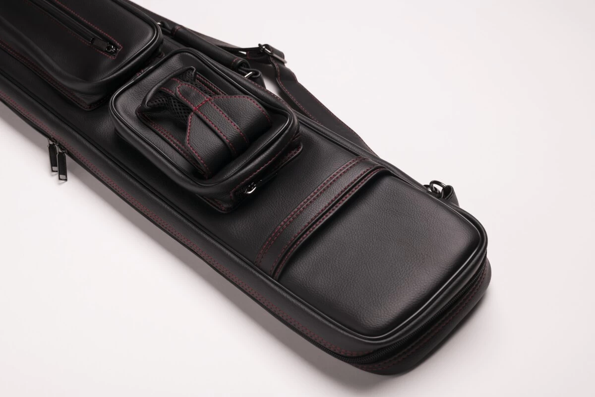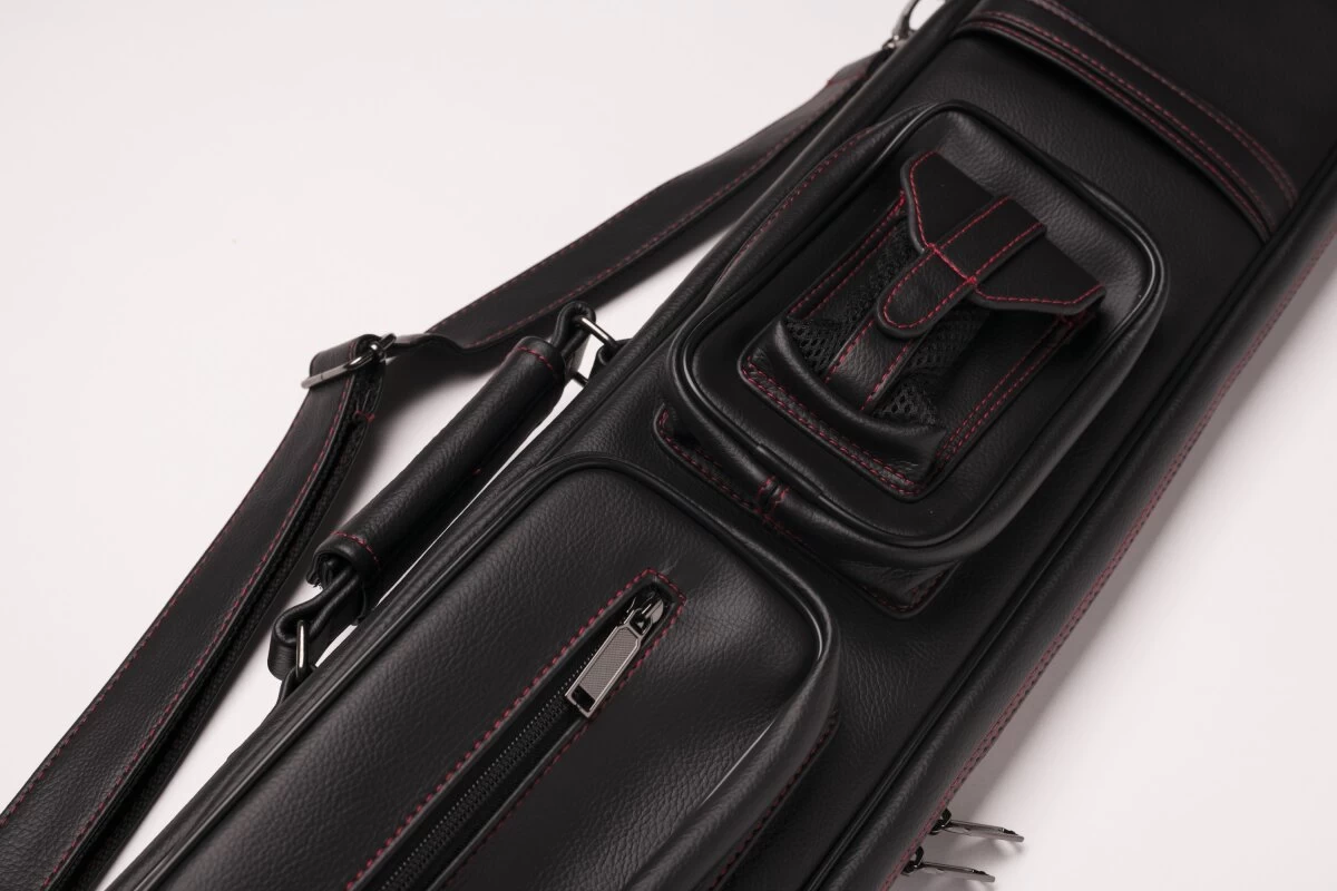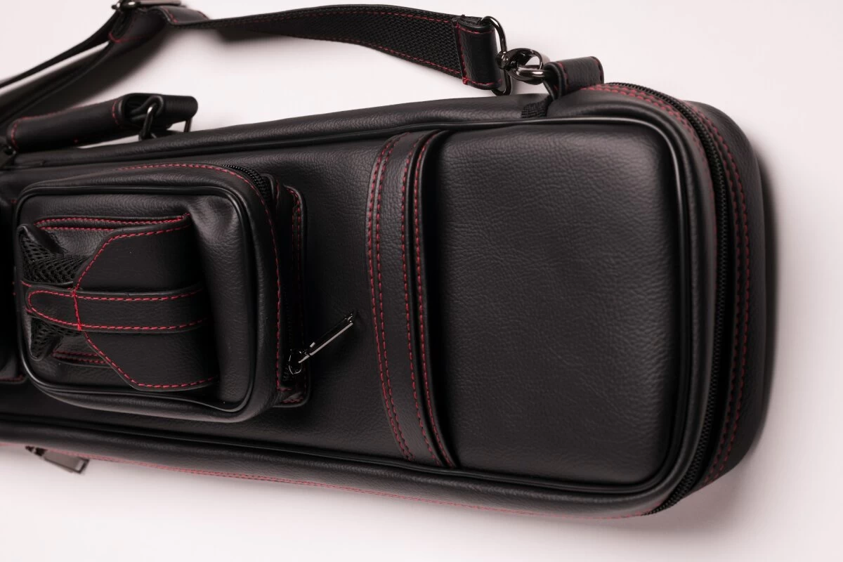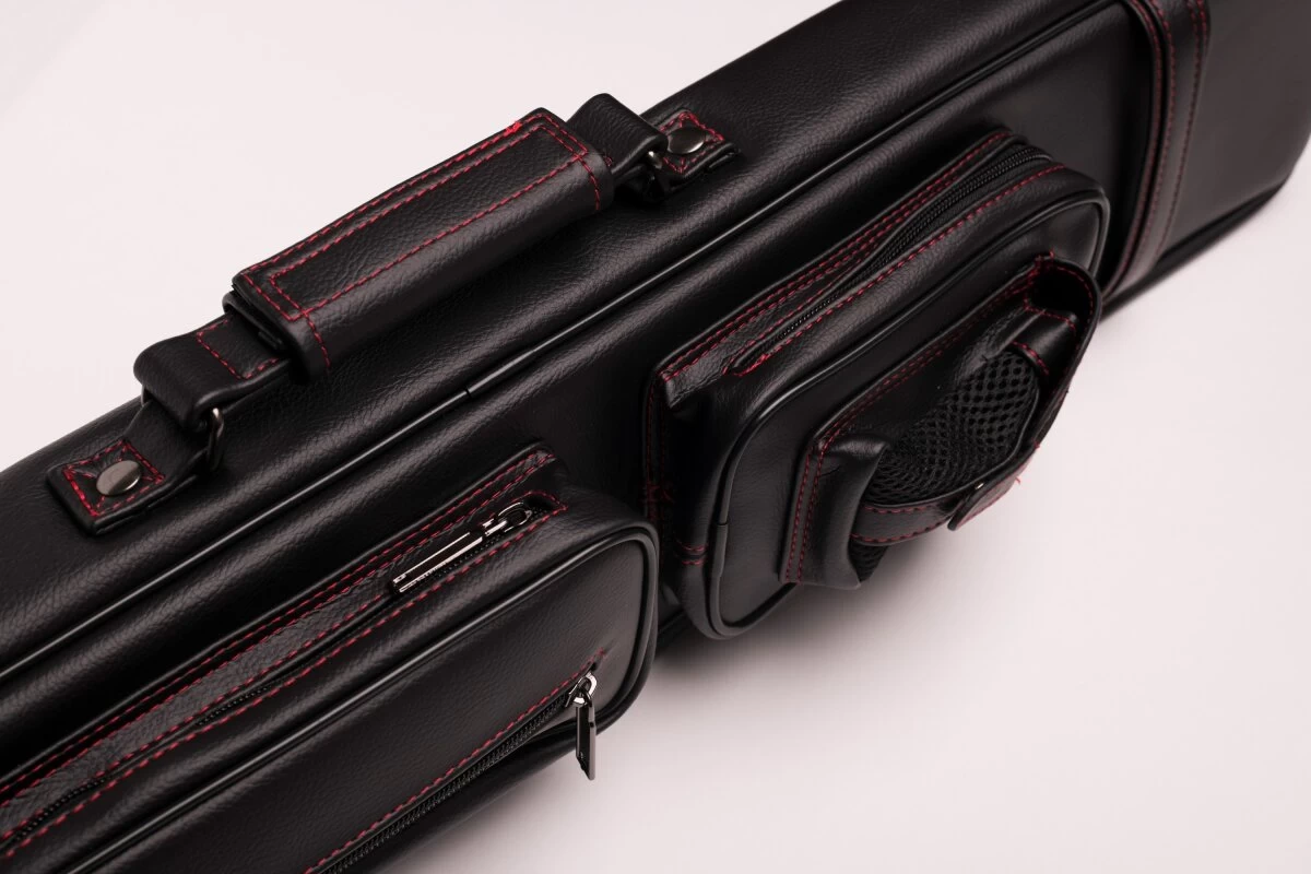 Schicke und zeitlose Queuetasche aus weichem Kunstleder. FĂŒr 2 Unter- und 4 Oberteile, dank der flexiblen Schuberaufteilung aber auch anders kombinierbar. In die Seitentaschen passt etliches Zubehör, in die lĂ€ngere Seitentasche auch das Unterteil eines Jump-Queues. Queuetaschen haben den Vorteil, dass sie deutlich leichter sind als Köcher, was der eine oder andere bevorzugt. Mit verstellbarem Schultergurt und zwei Tragegriffen.