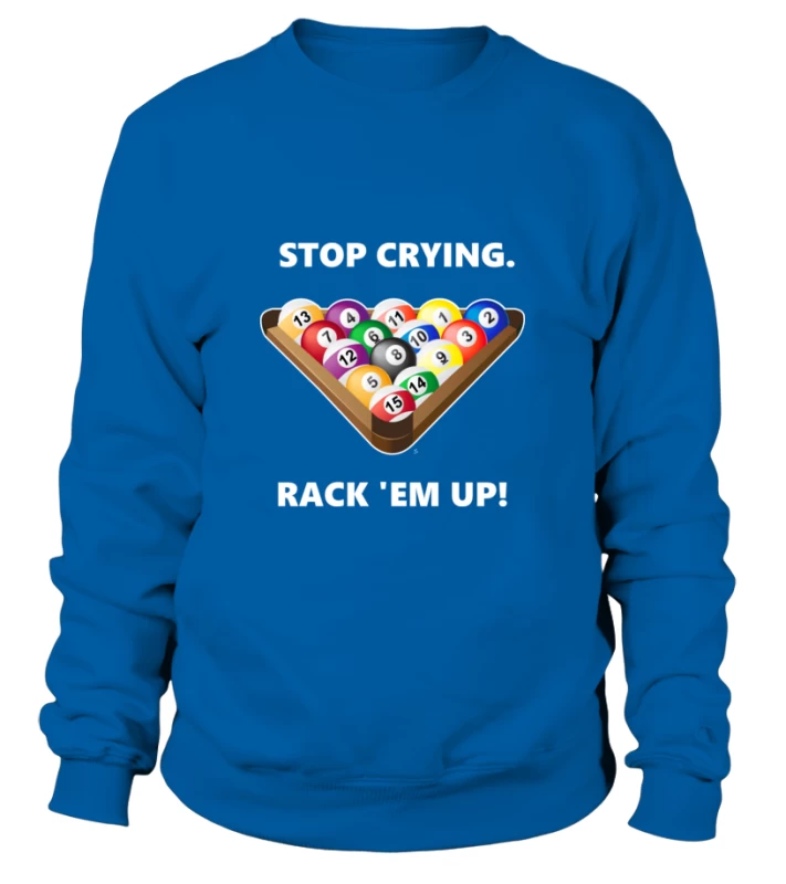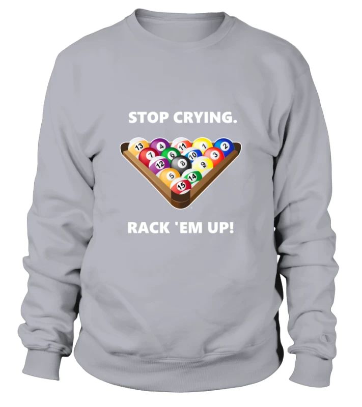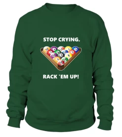 Der Tisch ist schief. Die Kugeln kleben. Es ist zu laut. Und außerdem hast Du ja eh nur Glück. Kommt Dir dieses Gejammer anderer Billardspieler bekannt vor? Dann zeig Ihnen mit diesem Shirt, was Du von dem Geheule hältst und sag Ihnen: „Stop crying, rack ‚em up!“