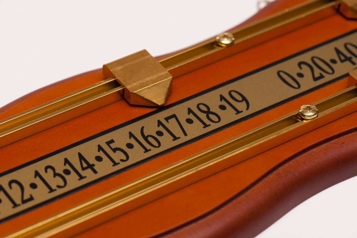 Die klassische Zähltafel zum Punktezählen im Snooker mit Schiebern aus Metall für zwei Spieler.